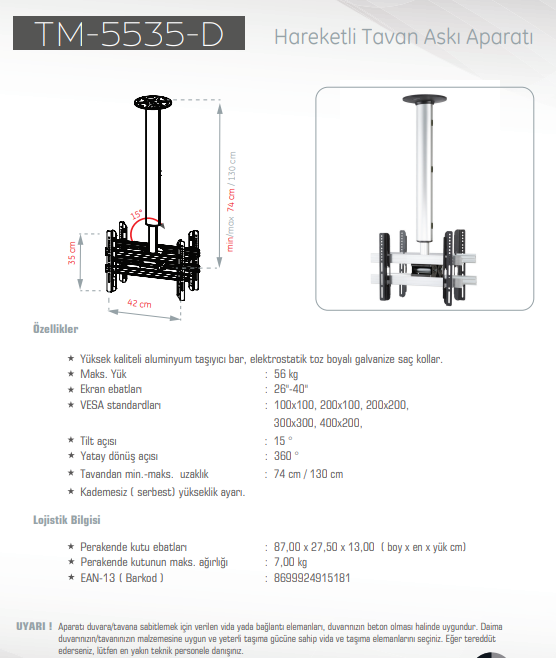 Ultimate TM-5535-D Double Lcd Led TV Tavan Askı Aparatı 56 Kg